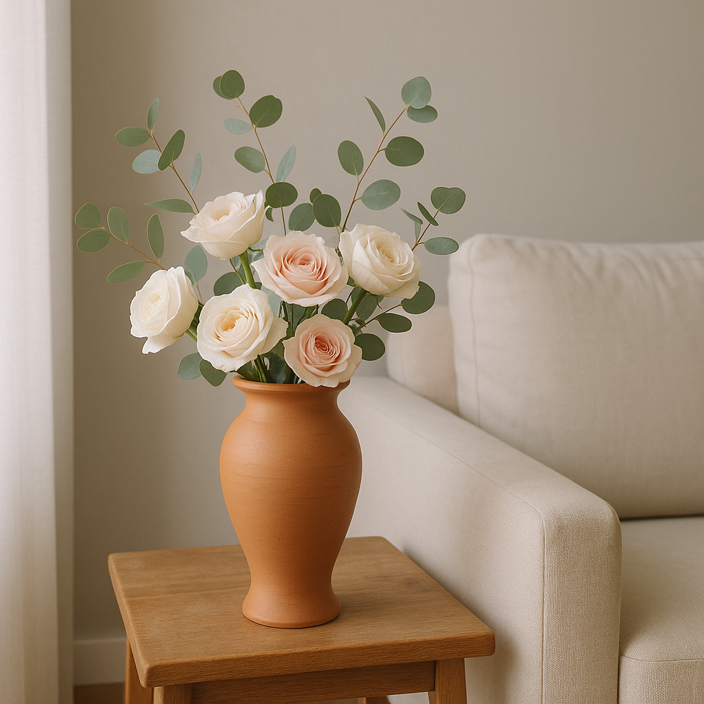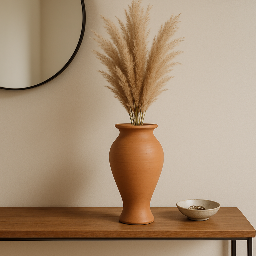 مزهرية كلاينست المصنوعة يدويًا من الطين المحروق - قطعة ديكور دافئة وخالدة مصممة لإضفاء لمسة جمالية على أي ركن من أركان منزلك. تم تشكيلها يدويًا وتشطيبها بالطين المحروق الطبيعي، تضفي هذه المزهرية هدوءًا طبيعيًا على الرفوف، وطاولات الكونسول، وطاولات القهوة، والمداخل.