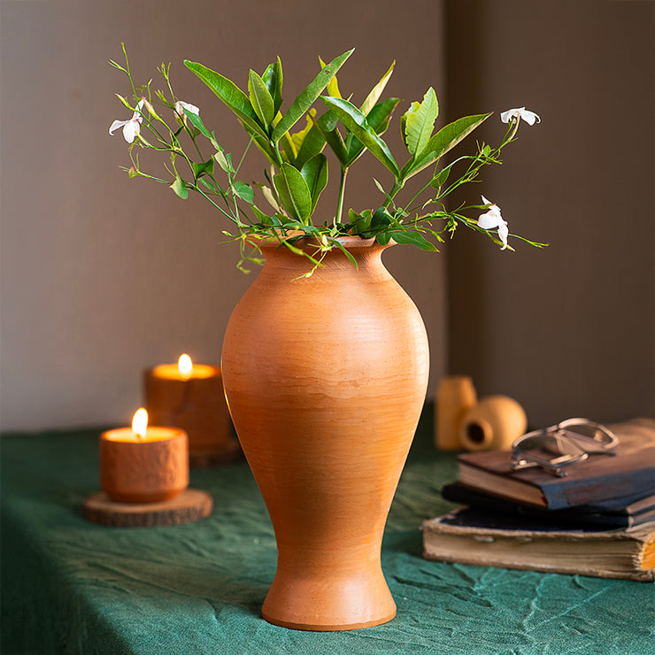 مزهرية كلاينست المصنوعة يدويًا من الطين المحروق (24 سم) - مزهرية ديكور من الطين الطبيعي
