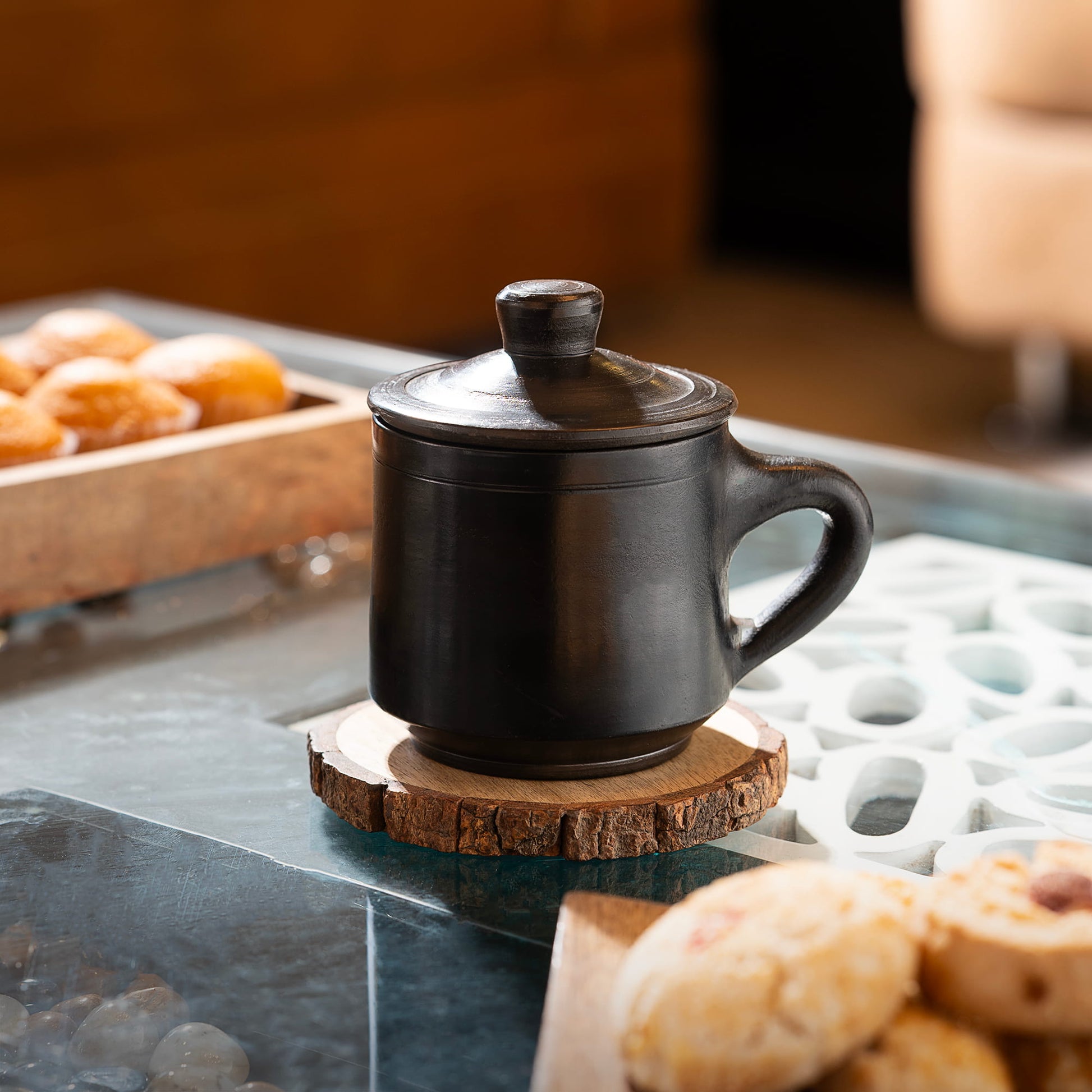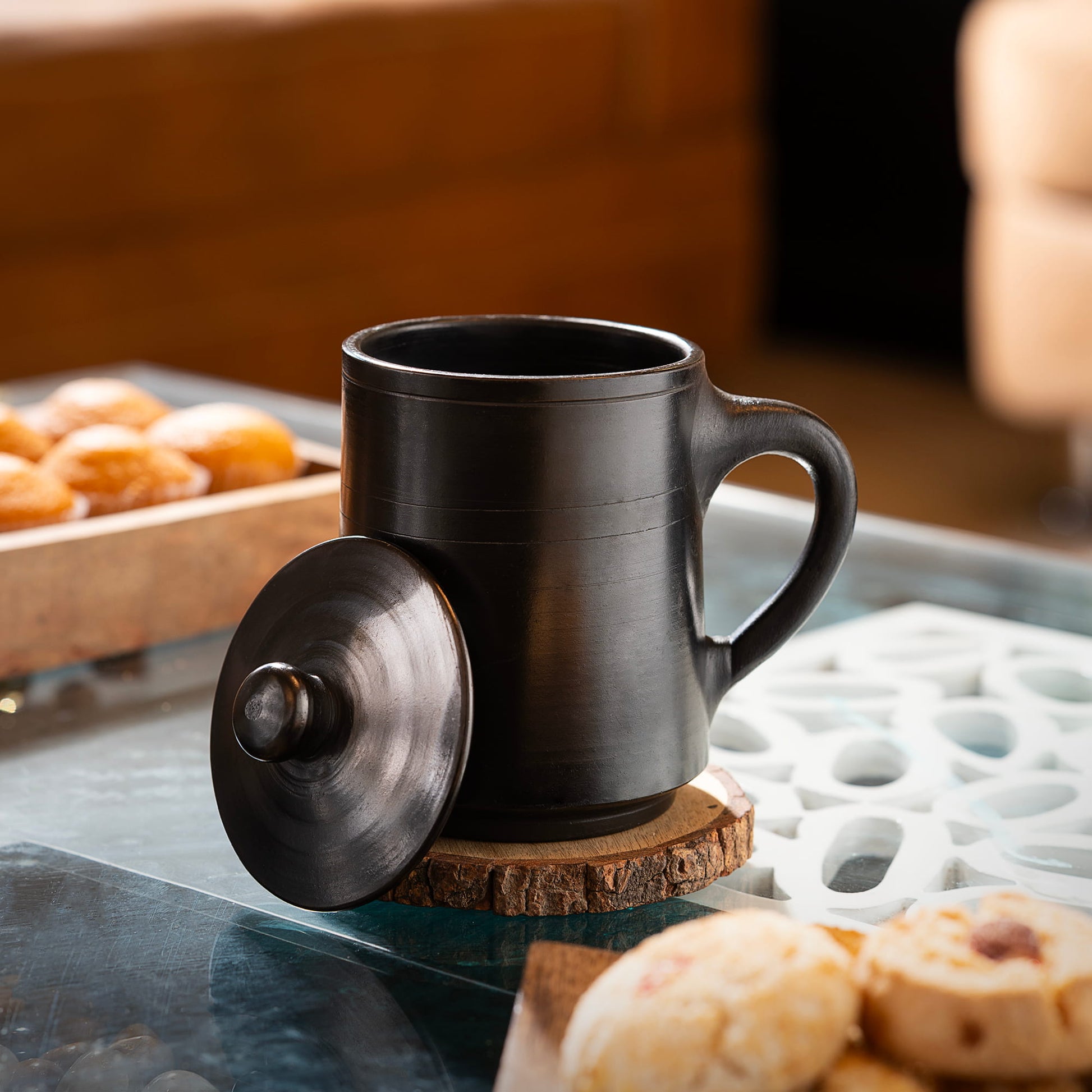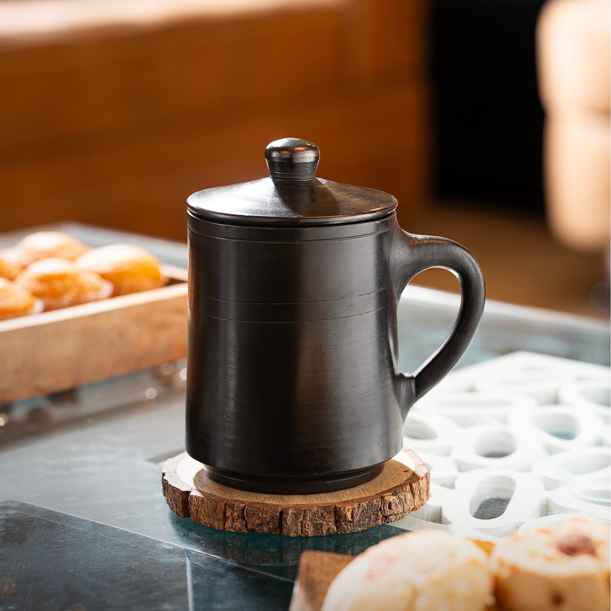 Crimson Noir Black Terracotta Mug with Lid 300 ml - 500 ml